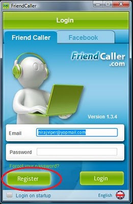 After it is fully installed, open friend caller from desktop. Then register. I recommend you to use temporary email for the registration, like yopmail.com